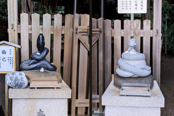 2025年の干支の狛へび様がおられる。